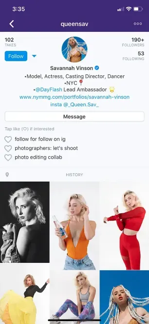 "A friend in the industry introduced me to Dayflash and I fell in love! I’ve met so many amazing and creative people on the app!" — Savannah, @queensav