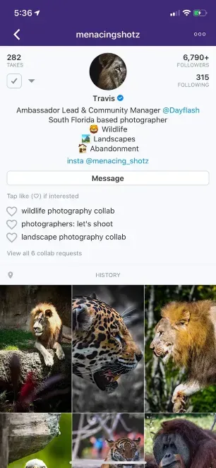 "This is why I love Dayflash! There are so many amazing artists and a great community to share and grow your craft! I find it way more inviting as an artist to share without the app holding you back! I’ve met so many amazing people throughout this journey and I can’t wait to see what else photography brings!” — Travis, @menacingshotz